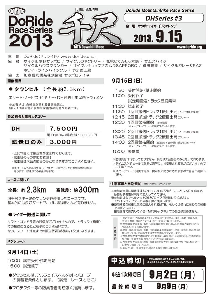 ※各大会に関するお問いわせは「 race@doride.org 」までお願いします。