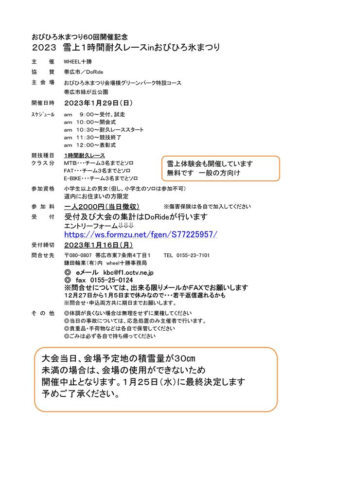 Wheel十勝主催のレースです。